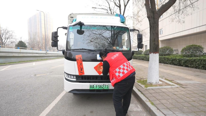 腊月二十三,北方小年。清晨8点,西安一停车场内,一辆4米2的货车上贴着的红色春联格外显眼,“喜乐 顺遂”。车主余师傅正绕着车仔细检查,轮胎、灯光、油液,一项不落。“常在路上跑,车辆安全才能保证货物安全,司机安全”他说。